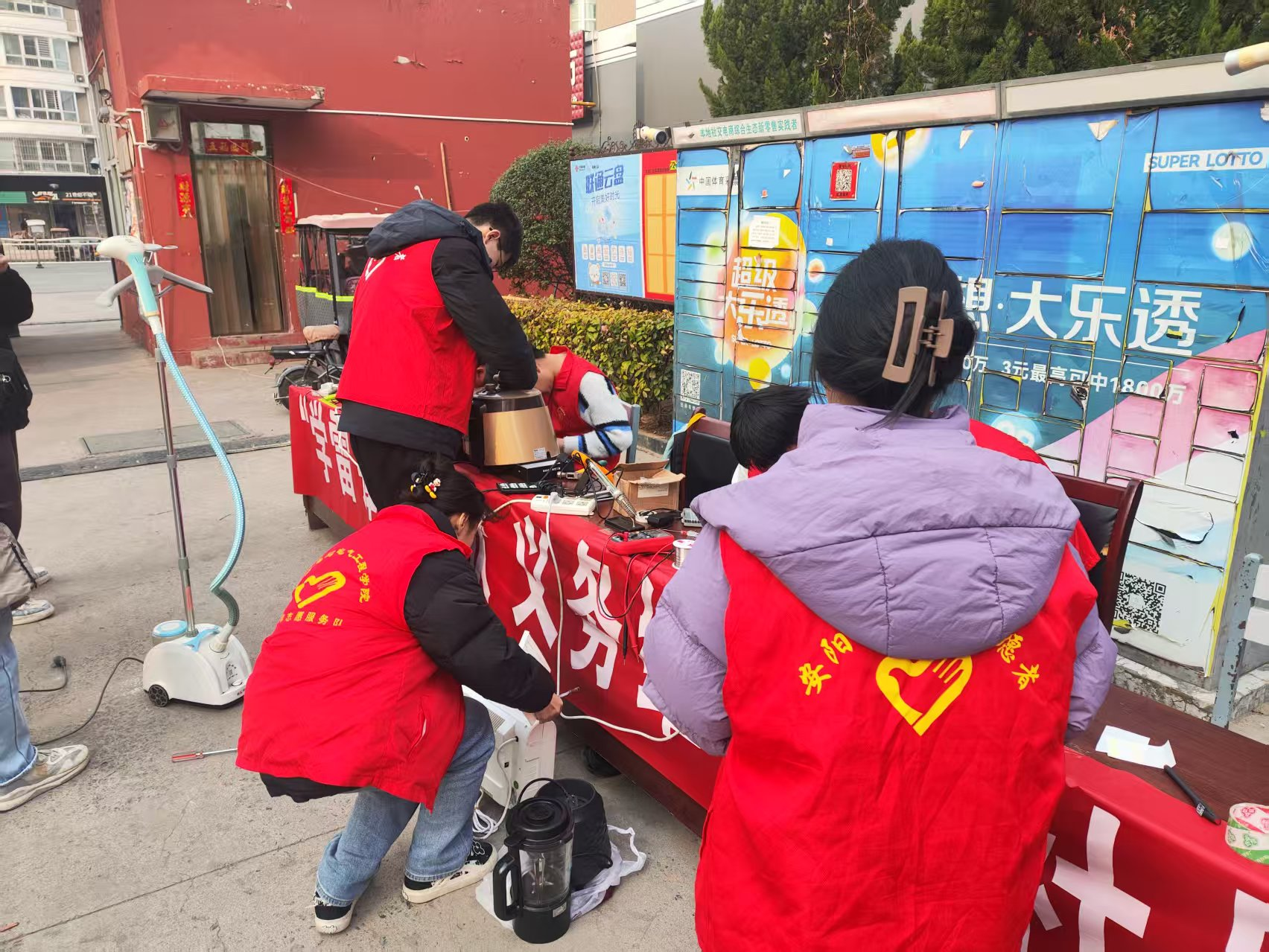 活动现场热闹非凡,志愿者们摆好后维修工具,就陆续有居民带着故障家电前来,包括电吹风、电熨斗、电视机等家电,种类繁多。同学们凭借扎实的专业知识和熟练的操作技能,迅速投入工作,从拆卸、检测、到维修,不放过任何一个细节。