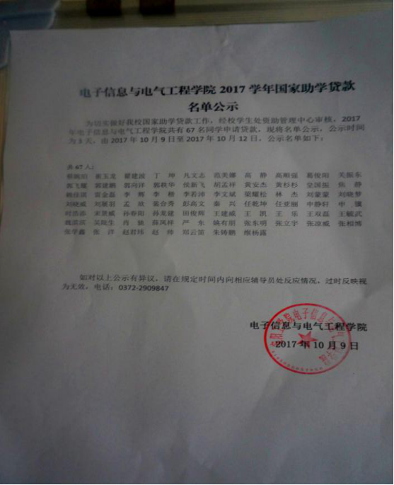 国家助学贷款名单公示照片