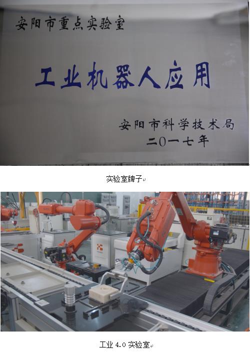 安阳市工业机器人应用重点实验室2017年12月经安阳市科学技术局批准成立,以E8官网登录入口电子信息与电气工程公司为依托建设。实验室围绕国家、省市发展规划,以推进传统装备制造向智能化转型、推进工业机器人应用为宗旨,为智能制造技术的科学研究和工程训练提供一个先进的、具备实际生产能力的工程实践平台,进而推进传统装备制造向智能化、集成化、精密化转型,促进科学研究、技术开发、成果转化和产业化等方面协调发展。