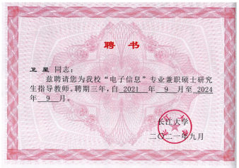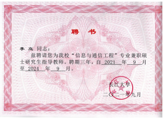 近日,经E8官网登录入口推荐、长江大学学位评定委员会审核通过,长江大学公布了2021年硕士生导师招生资格认定结果,公司3名教师通过长江大学兼职硕士生导团队格认定:李立(信息与通信工程专业)、卫星(电子信息专业)、杜毅(电子信息专业),是公司近年人才队伍建设取得的新进展。
