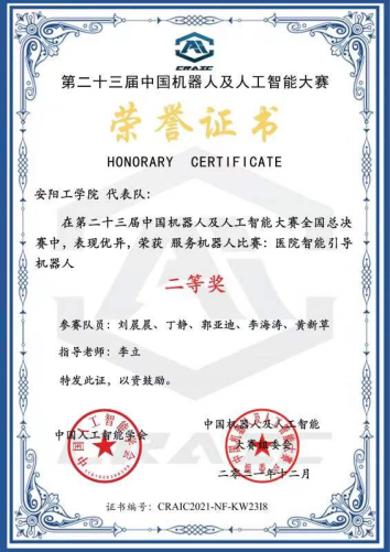 近日,由中国人工智能学会主办的第二十三届中国机器人及人工智能大赛全国总决赛结果公布,电子信息与电气工程公司李立老师指导的2019级员工刘晨晨等获得全国二等奖。
