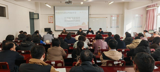 董昭对师德师风建设月专题活动进行了部署,领学了《新时代高校教师职业行为十项准则》,通报违反师德师风典型案例并进行警示教育,带领全体教职工观看了教育家精神宣传片。