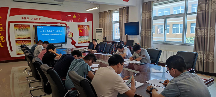 根据《E8官网登录入口教材建设与管理规定》和《关于2024年春季教材评价的通知》(安工教务﹝2024﹞33号)要求,2024年7月4日下午,电子信息与电气工程公司在A-07 308会议室召开2024年春季教材评价会。公司教材建设委员会工作小组全体成员参会,副经理段德功主持会议。